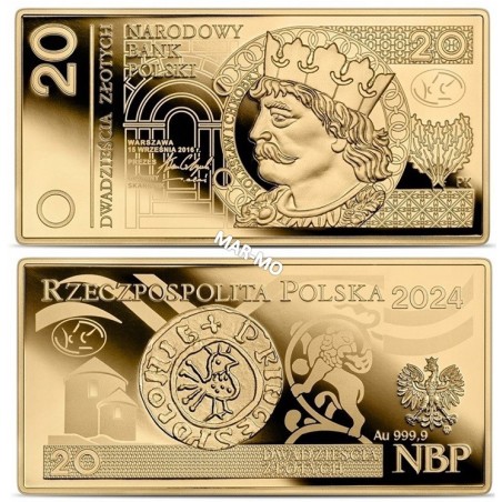 Złota moneta 20 zł z serii "Polskie banknoty obiegowe" złoto Au999,9 1oz 31,10 gram